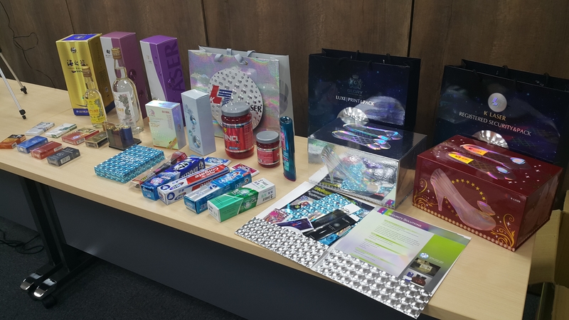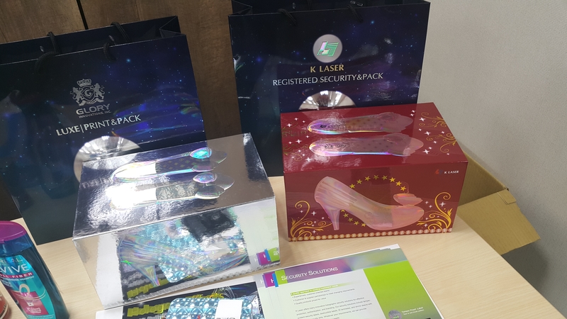 前天下午特地到台北車站附近的福邦證券參加光群雷射(2461)的法人說明會,這也是我人生第一次參加法說會。我是第一個到場的,本來看簽到簿上列了會有10個人來參加,最後是坐9成滿約20個人到場。如上圖,坐最左邊的是光群雷射財務長黃千鳳、她旁邊那位是董事長郭維武。這場法說會是由董事長郭維武親自做簡報說明。在布幕右手邊那2幅雷射膜,左邊那幅是用光群雷射獨家研發出來的TSL(無版縫)技術做出來的,右邊那幅則是用傳統技術做出來的在其中間偏上的位置就有一條版縫。(TSL簡介http://chinese.klaserhk.com/Products/TSL)另外如下面的圖片,在會場的後方有展示光群雷射的產品,許多知名品牌廠商都是光群的客戶