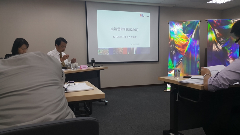 這篇我只寫一些重點摘要,整場法說會有錄影,前天董事長特助蔡偉文先生是告訴我,他們會後會放上公司的官網。目前是還沒放上去,法說會詳細的內容,有興趣的人之後可以再上光群雷官網去觀看這場法說會的影片。現場的簡報PDF檔可以去光群雷射官網下載http://www.klasergroup.com/cht/investor_Detail.aspx?ID=98efe293-1a48-4c18-a50e-cc46879dfe98。